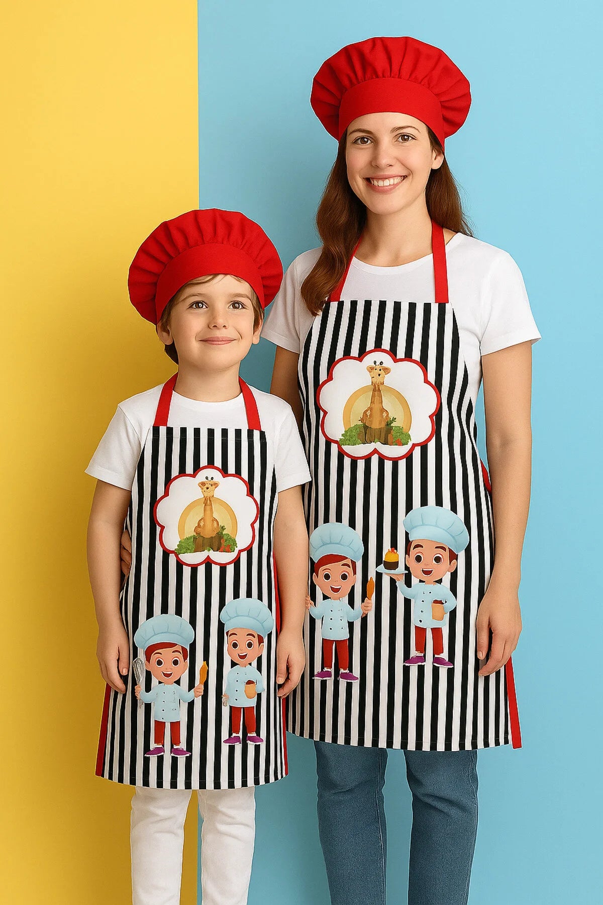 AYSHome Siyah Çizgili Anne Çocuk Mutfak Önlüğü