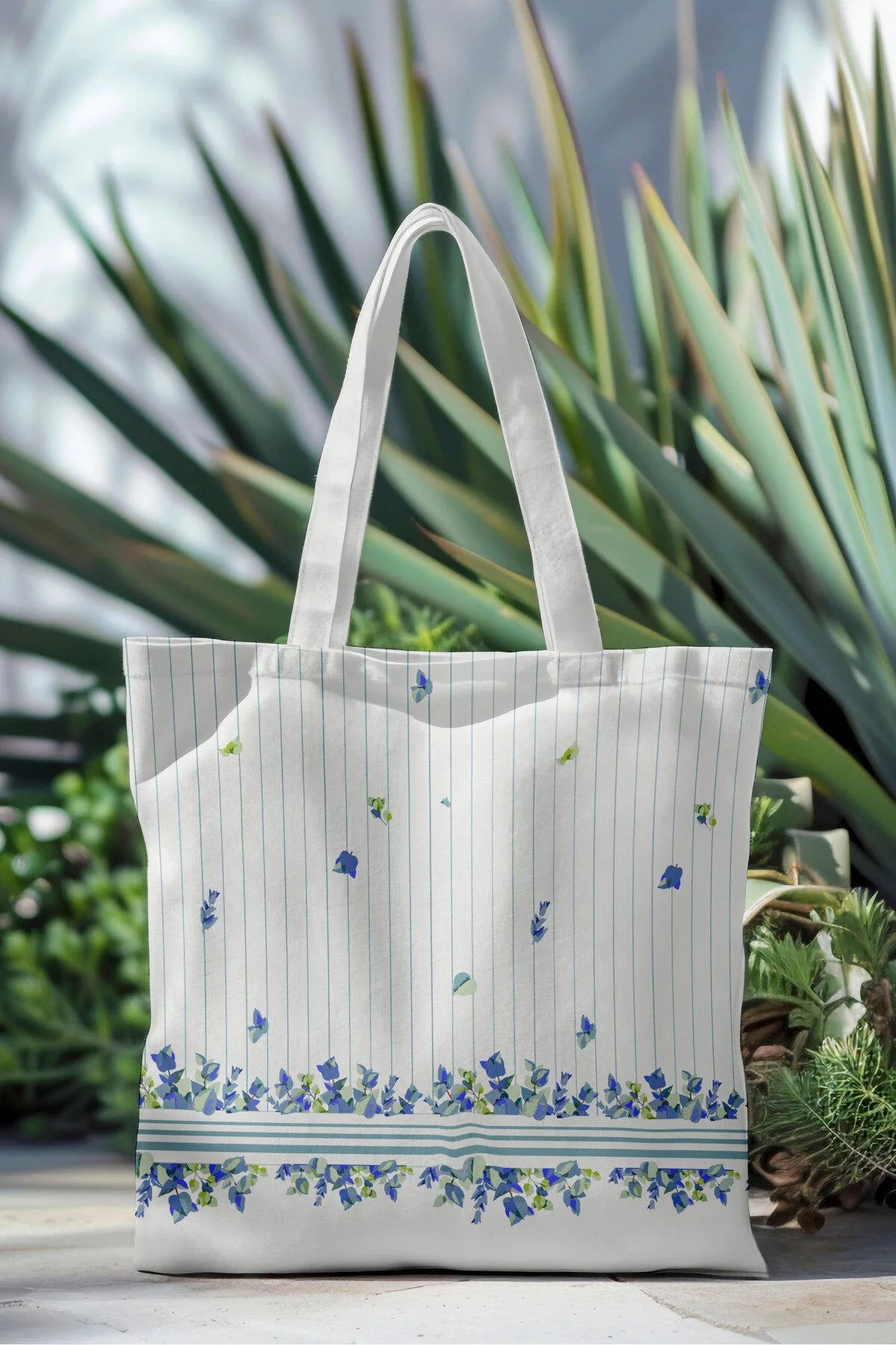 Ays Home Çizgili Çiçekli Baskılı Fermuarlı Bez Plaj Alışveriş Çantası
