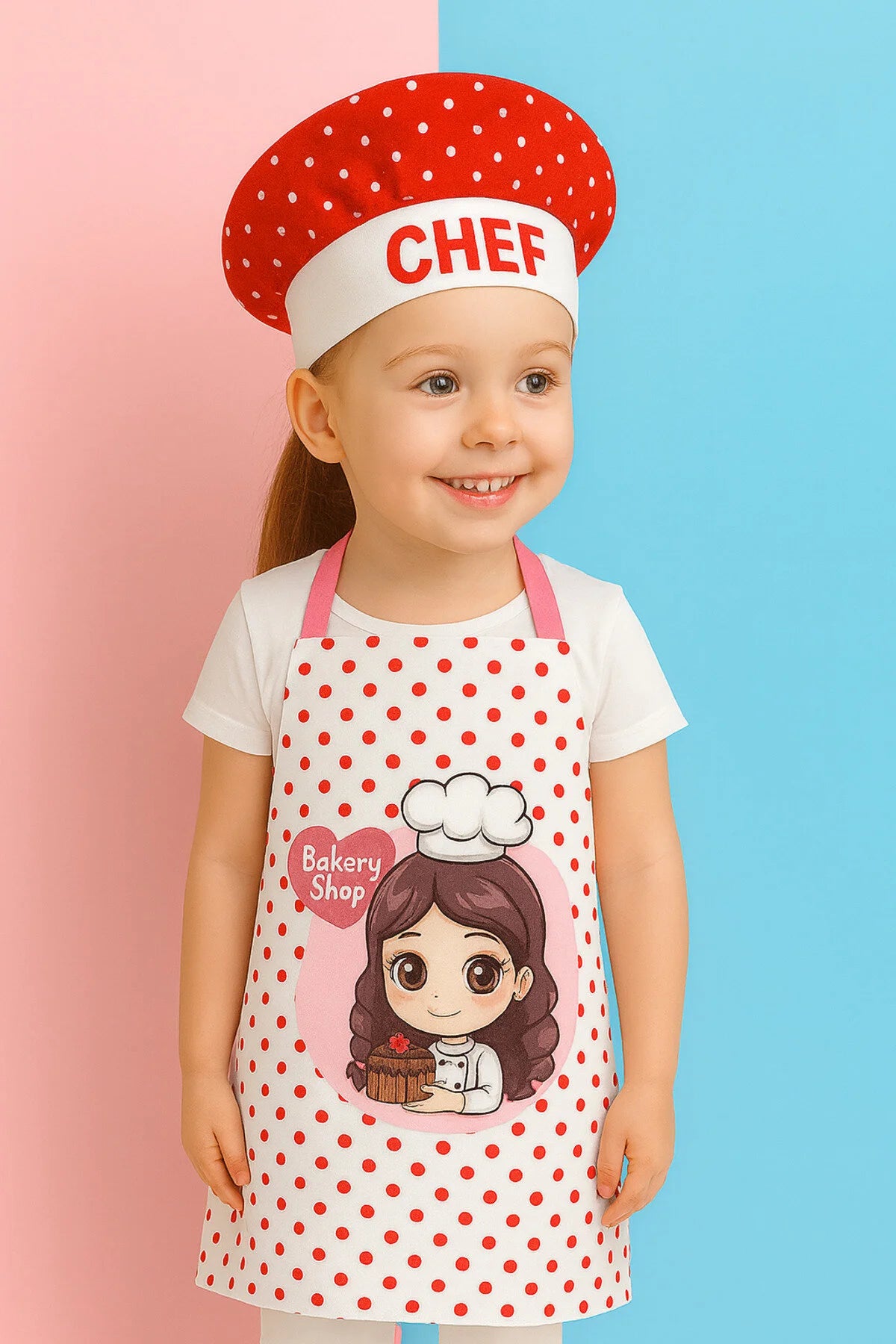 AYSHome Çocuk Puantiyeli Mutfak Önlüğü Ve Şapka