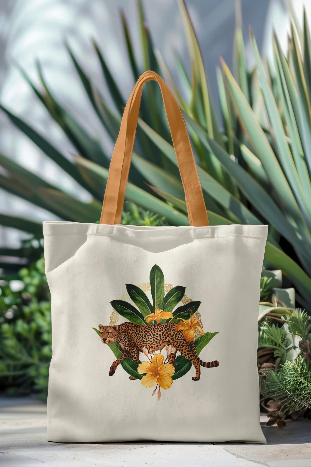 Ays Home Modern Leopar Desen Baskılı Fermuarlı Bez Plaj Alışveriş Çantası