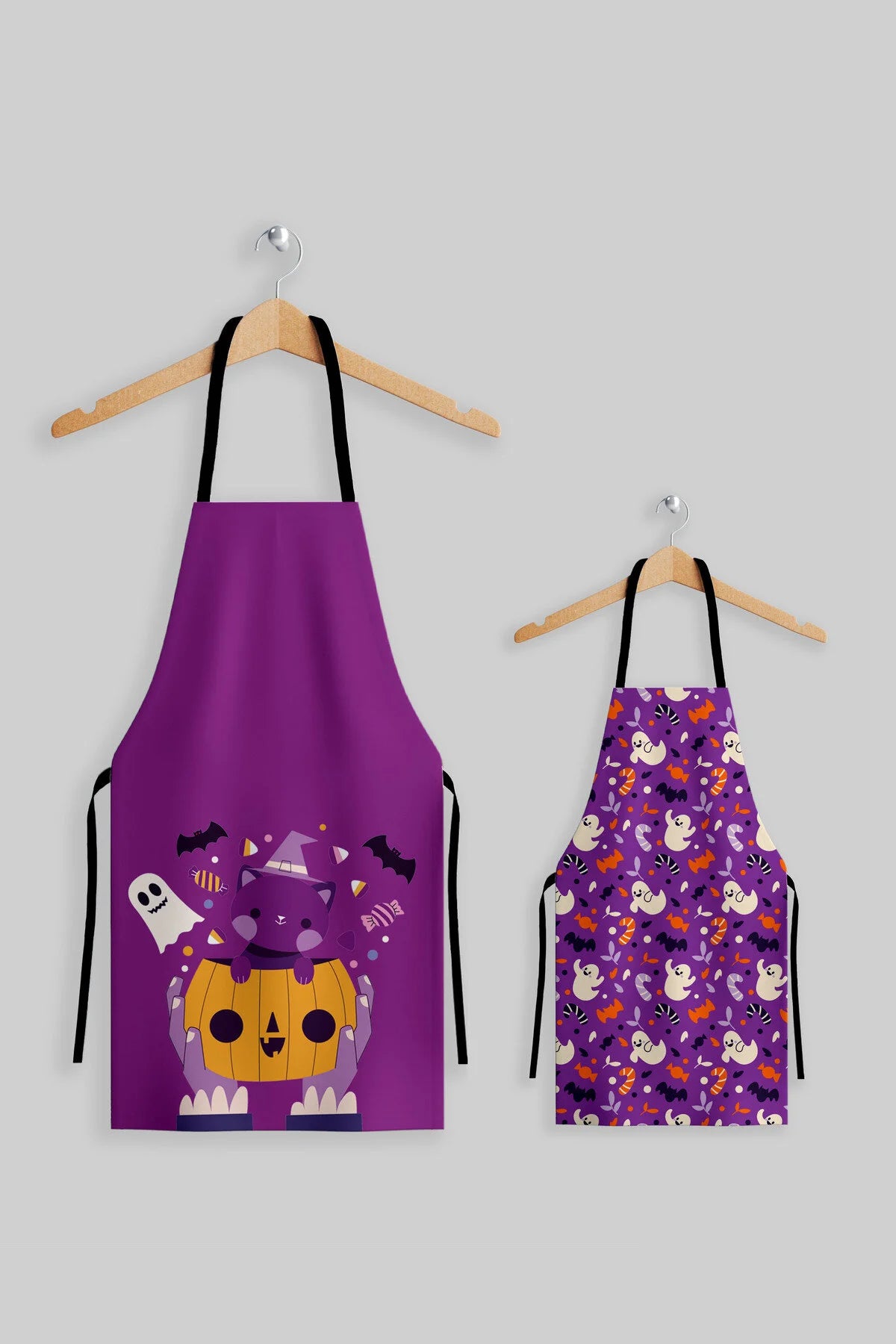 AYSHome Cadılar Bayramı Kedi Şekeri Anne Çocuk Mutfak Önlüğü Seti