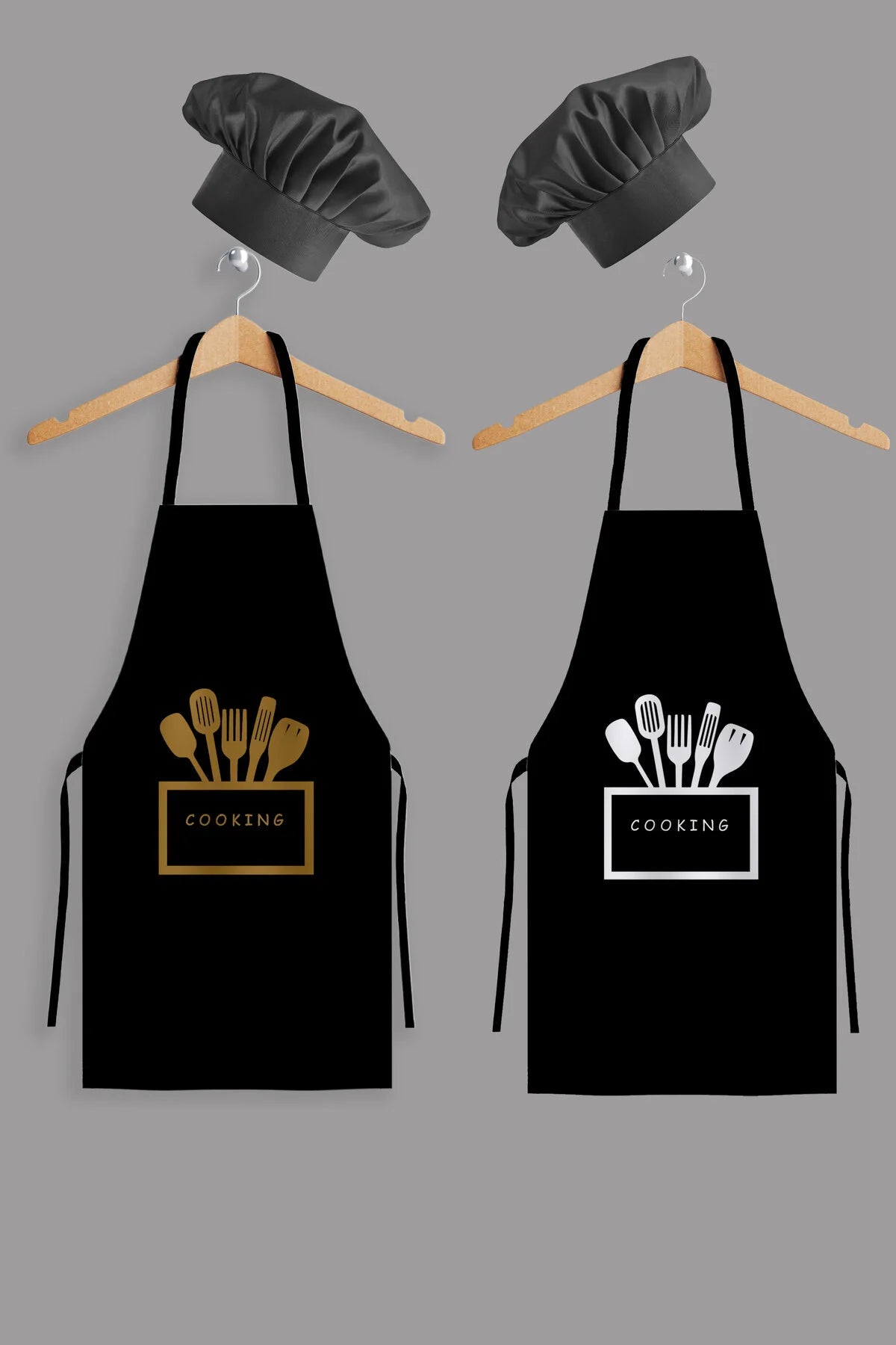 AYSHome Cooking 2'Li Şapkalı Mutfak Önlüğü Seti