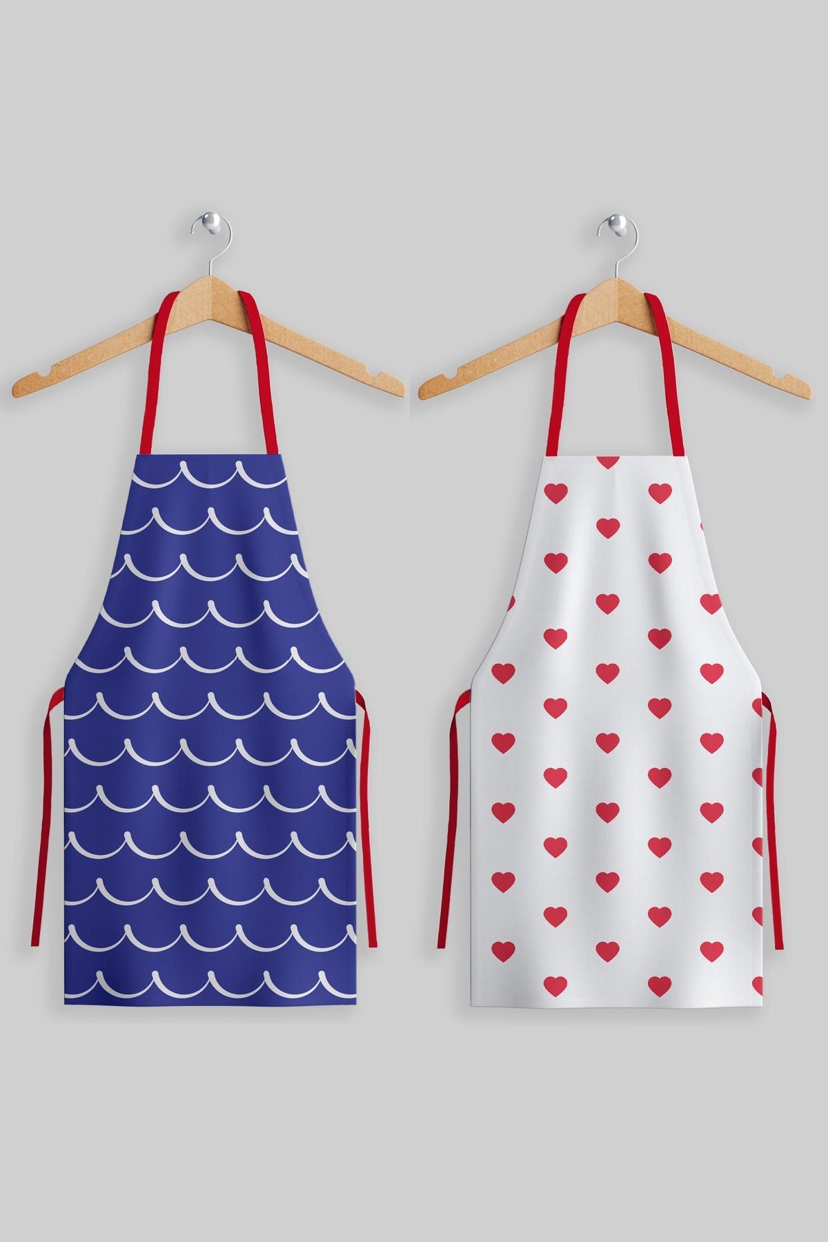 AYSHome Deniz Desen Mavi Beyaz Marin İkili Mutfak Önlüğü Seti