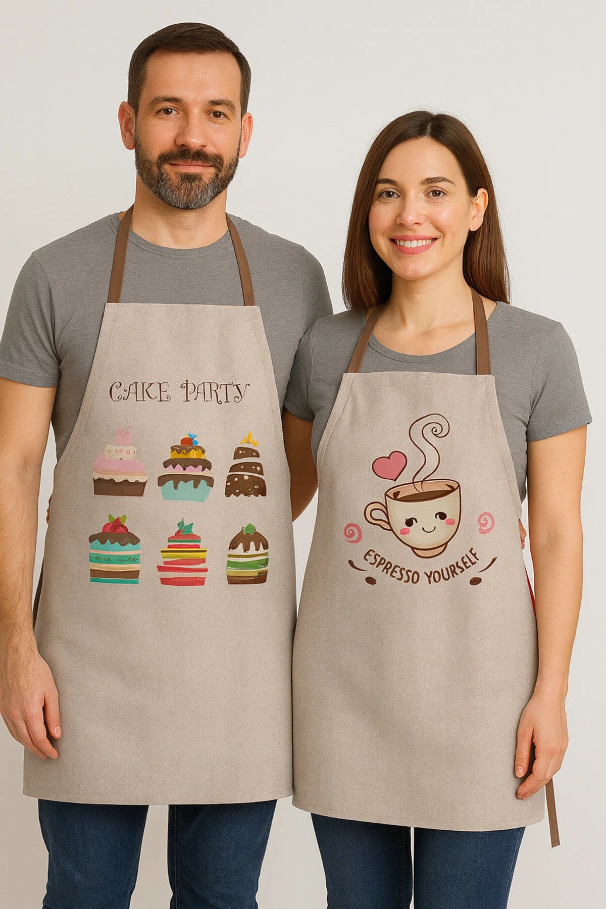 AYSHome Dijital Baskılı Keten Görünümlü 2'Li Mutfak Önlüğü Seti