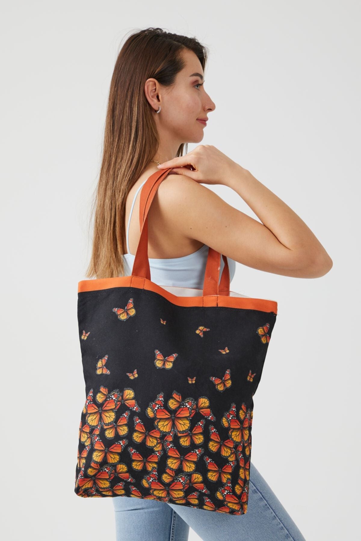 AYSHome Kelebek Desen Siyah Bez Alışveriş Plaj Omuz Çantası
