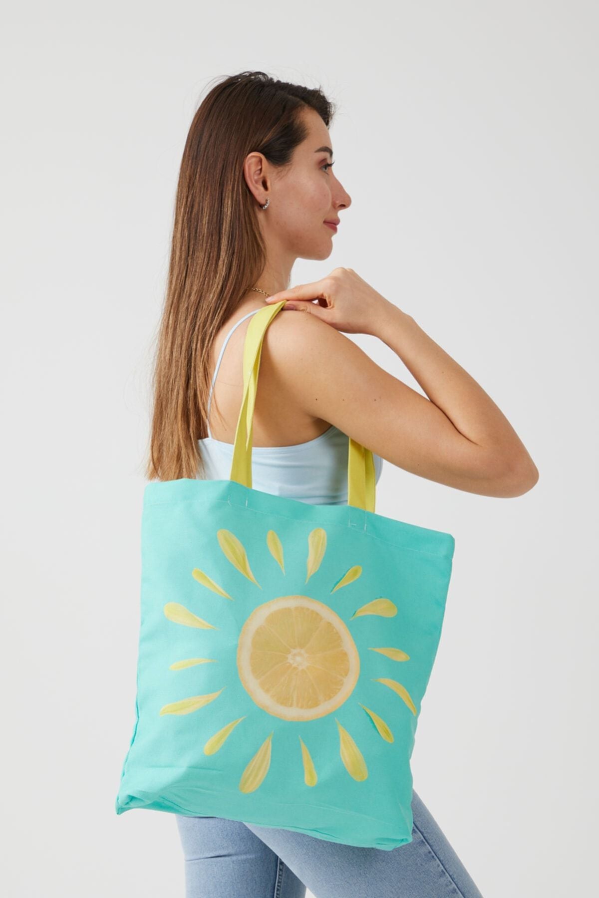 AYSHome Limon Desen Bez Alışveriş Plaj Omuz Çantası