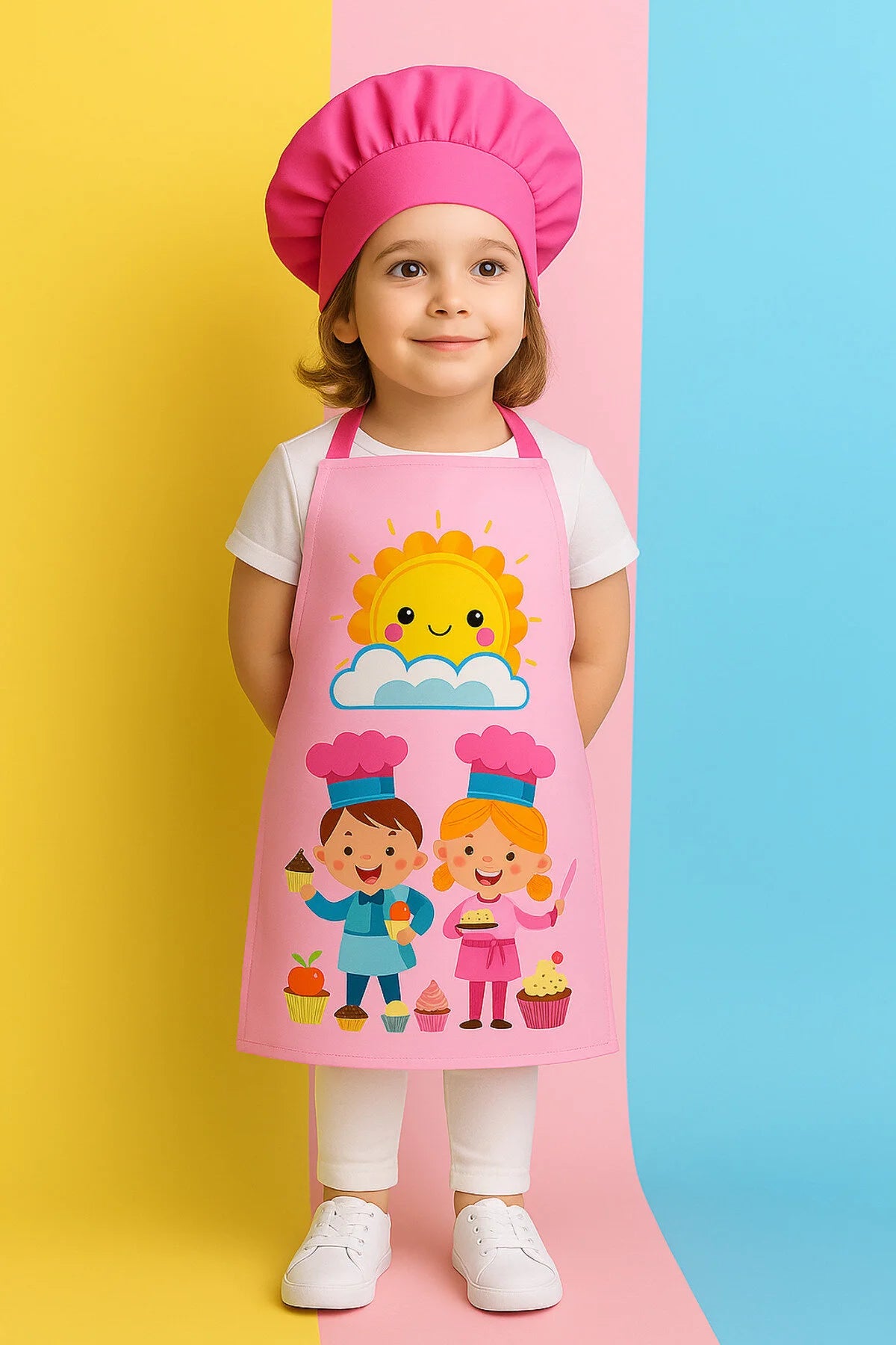 AYSHome Pembe Şapkalı Kız Çocuğu Önlük Seti