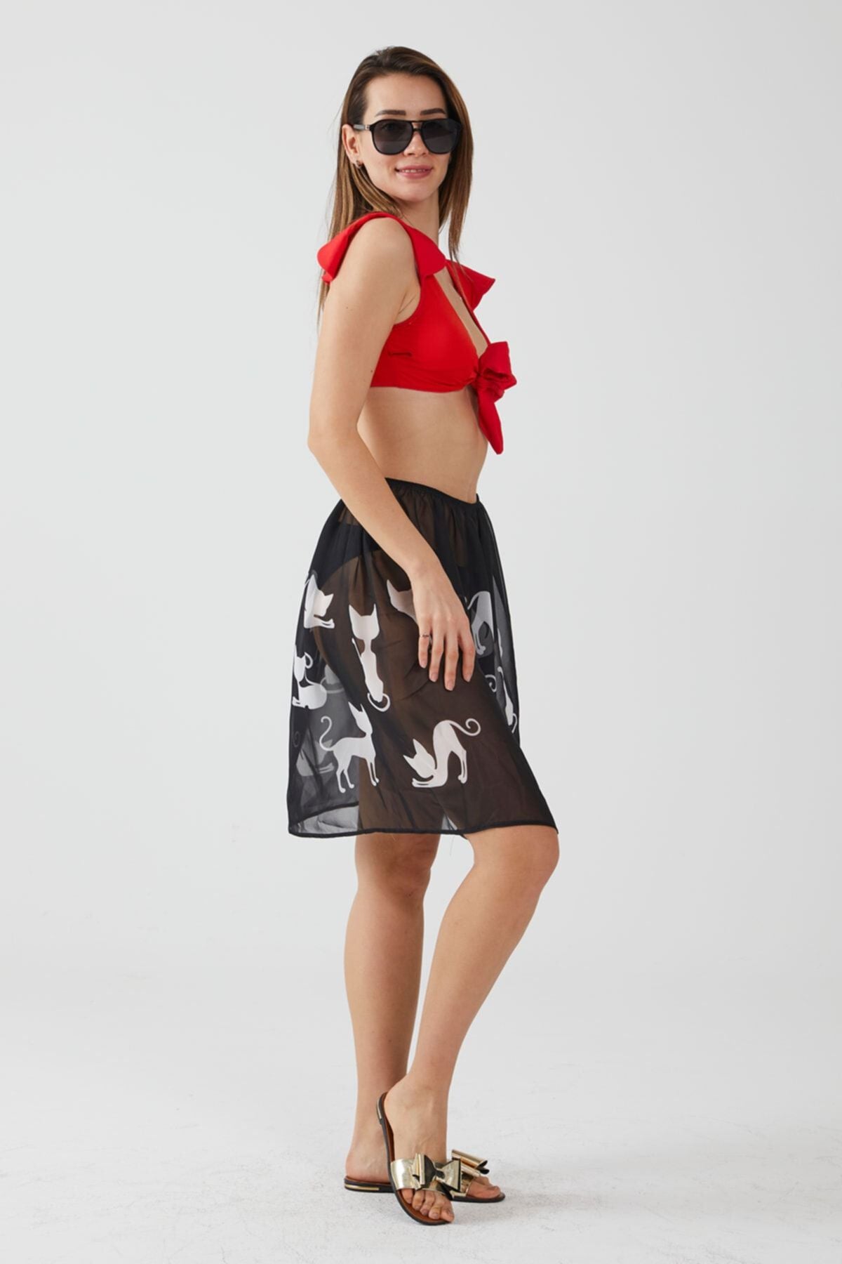 AYSHome Siyah Kedi Desenli Etek Plaj Giysisi