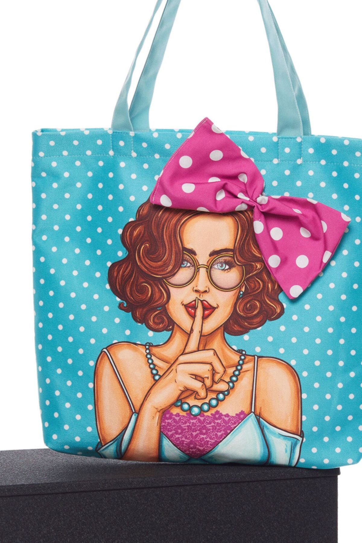 AYSHome Popart Desen Bez Mavi Puantiyeli Plaj Alışveriş Çantası